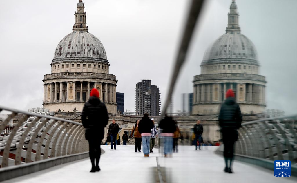 一名女子行走正在英国伦敦千禧桥上。